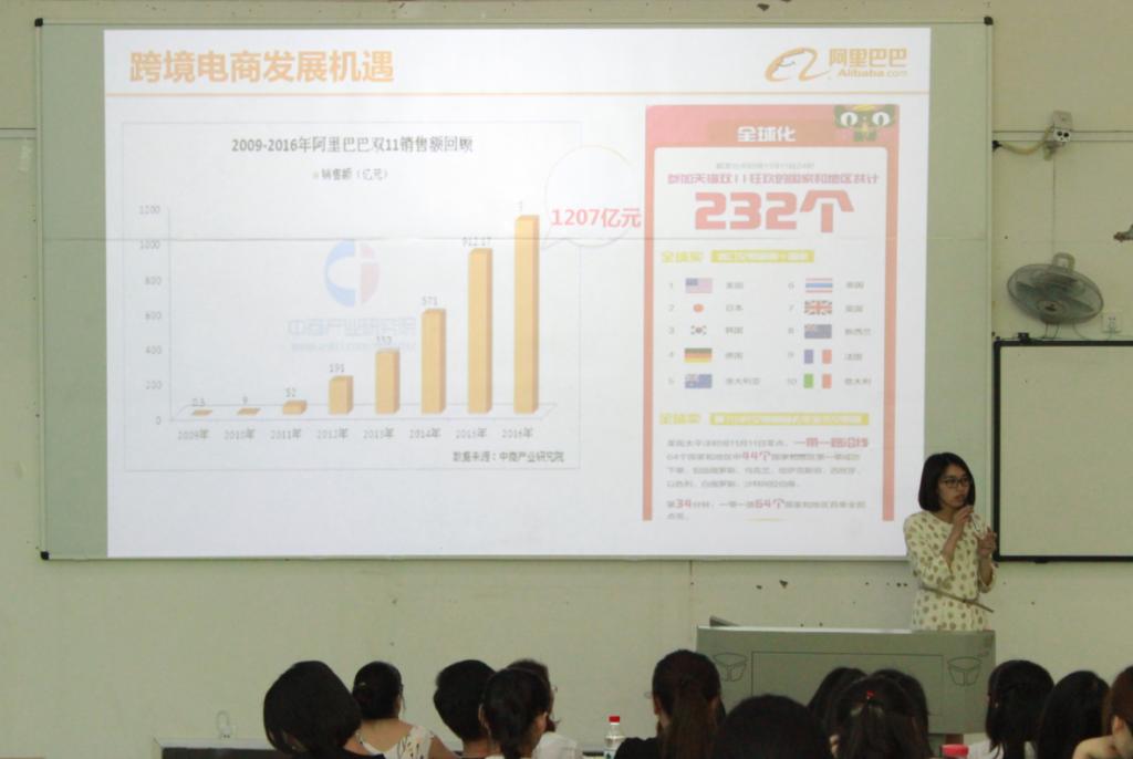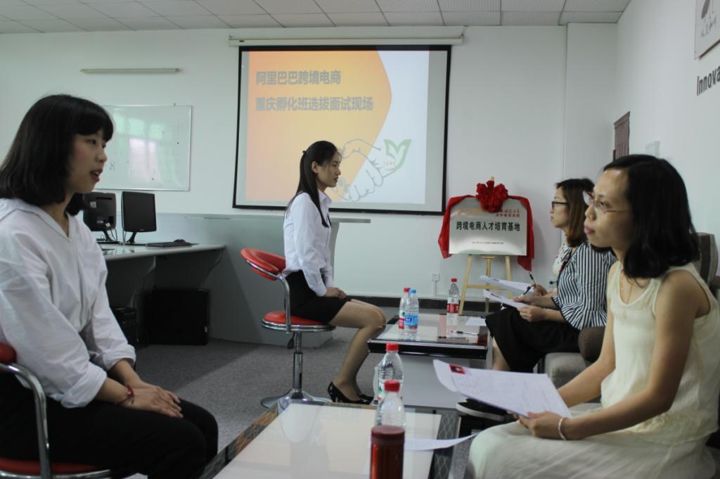首先,由阿里巴巴服务商重庆办事处负责人肖容主任针对国家“一带一路”对外开放战略、eWTP跨境电商人才需求、阿里企业文化和“百城千校,百万英才”面试选拔、培训孵化和实习就业等方面进行了专题讲解,让广大同学对该项工作有了整体认识和了解。接下来,组织学生在阿里巴巴跨境电商“创客+空间”进行了分组面试,面试重点考察学生的国贸及电商专业知识、英语口语表达、形象气质、商务礼仪、性格爱好等方面。