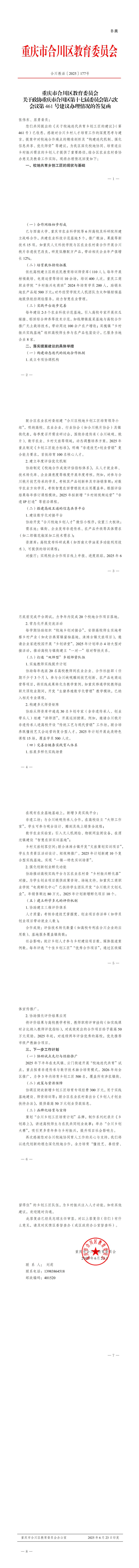 重庆合川区教委回复《关于校地迭代共育乡创工匠的建议》政协提案