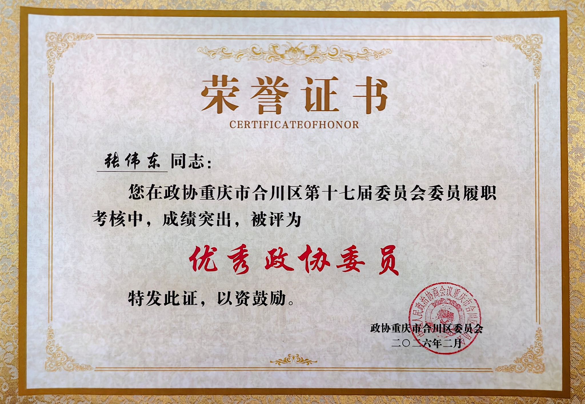 张伟东院长获重庆市合川区优秀政协委员表彰